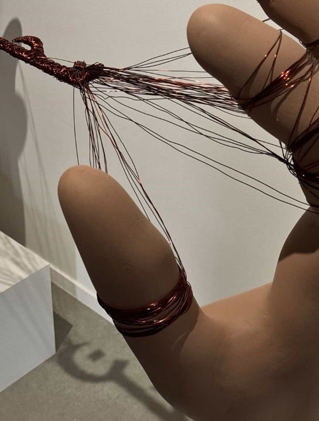 Hands are a key element in Nahnu. Amna described them as a symbol of the people of the UAE who helped build the country with their own hands. The copper connects the hands together, showing that real strength comes from unity rather than standing alone.